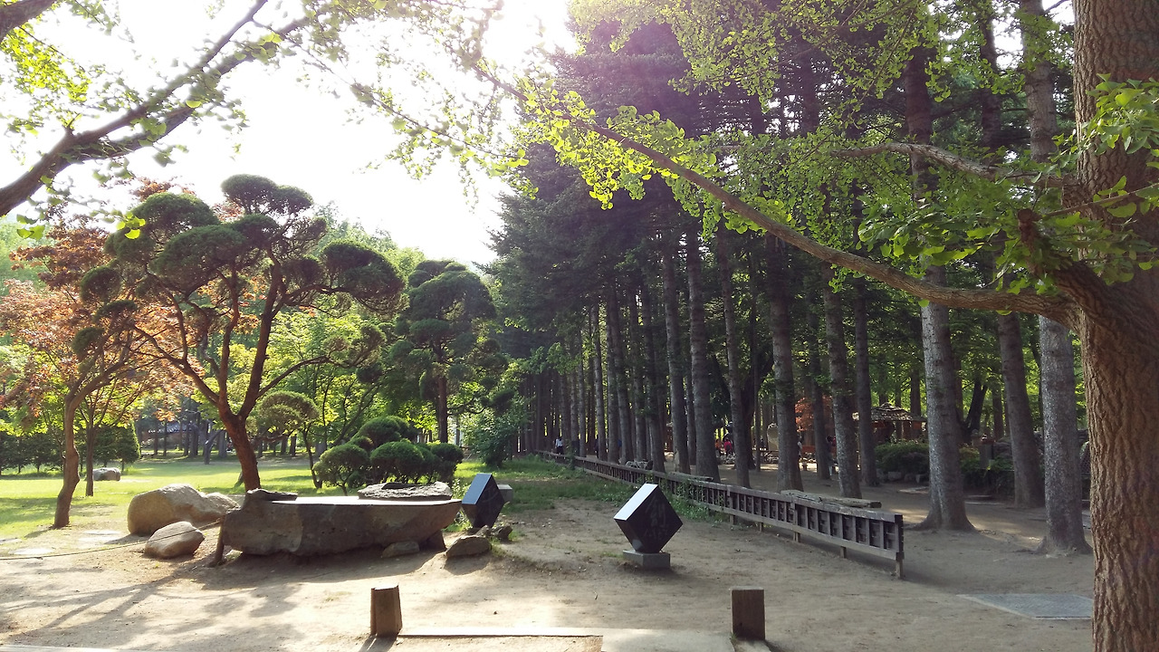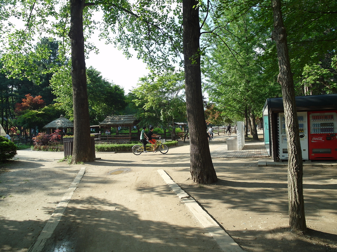 구석구석 가볼 만한 곳은 모두 달렸지만, ‘남이장군묘’엔 가보지 못했다. 이곳은 애써 찾아야만 겨우 갈 수 있는 곳이기 때문이다. 우린 외곽으로만 달렸으며 안을 세밀하게 보면서 달리진 않았기 때문에 놓친 것이다. 진짜 남이장군의 묘는 경기도 화성시에 있고, 이곳은 역모를 꾀한다고 유자광이 모함하여 능지처참을 당하게 된 후에, 그 시체가 묻혀 있다는 전설이 전해오는 돌무더기를 묘로 만든 곳이라고 한다. 가묘에 불과하지만, 그래도 남이섬이란 이름의 유래에 해당되는 장소이니만치 한 번쯤은 가보고 싶었다. 하지만 아이들의 뒤를 졸졸 따라다니느라 결국은 가보지 못하고 남이섬 자전거 여행은 끝이 났다.