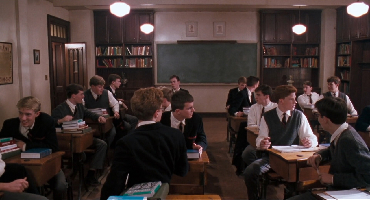 영화의 첫 장면은 입학식으로 시작한다. 이 학교의 4가지 교훈은 ‘전통, 명예, 규율, 최고’란다. 어디서 많이 들어본 구호다. 이 영화의 배경은 1950년대 미국의 웰튼 아카데미라는 학교다. 작은 규모의 학교지만 그 중 75%가 아이비리그(우리나라로 치면 일류대에 해당)에 합격하였단다.