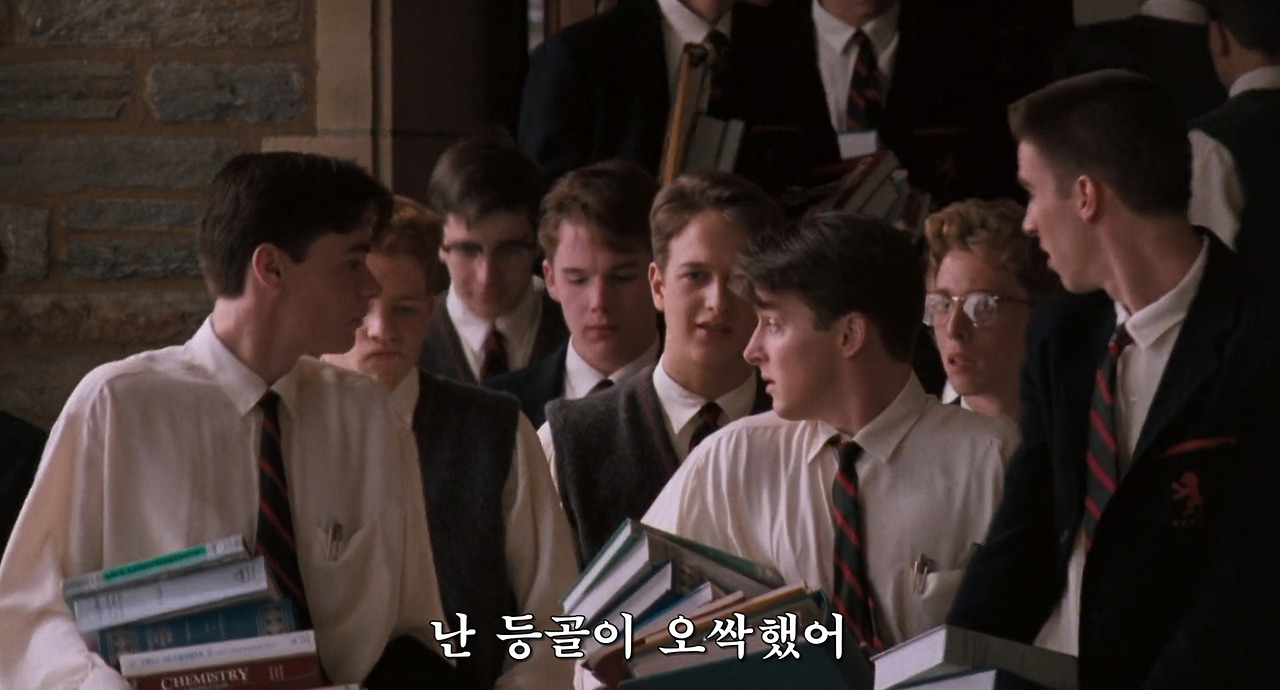 그런데 키팅 선생은 대결구도가 아닌 다른 방식으로 학생들과의 대면한다. 그는 교실에 들어가자마자 휘파람을 불며 그들을 스쳐지나갔고, 뒷문으로 나가고 나선 “어서와~”라며 학생들을 박물관으로 불러 모은다. 당연히 학생들은 그런 교사의 돌출행동에, 아니 ‘유일무이한 상황’에 당황하며, 쭈뼛쭈뼛 자리에서 일어선다. 그들은 휘파람 소리를 들으며 지금까지와는 다른 긴장감이나 억눌린 현실이 아닌 청량감을 느꼈을 것이고, “어서와~”라는 말을 들으며 현실에서 벗어나 일탈의 상쾌함을 느꼈을 것이다.