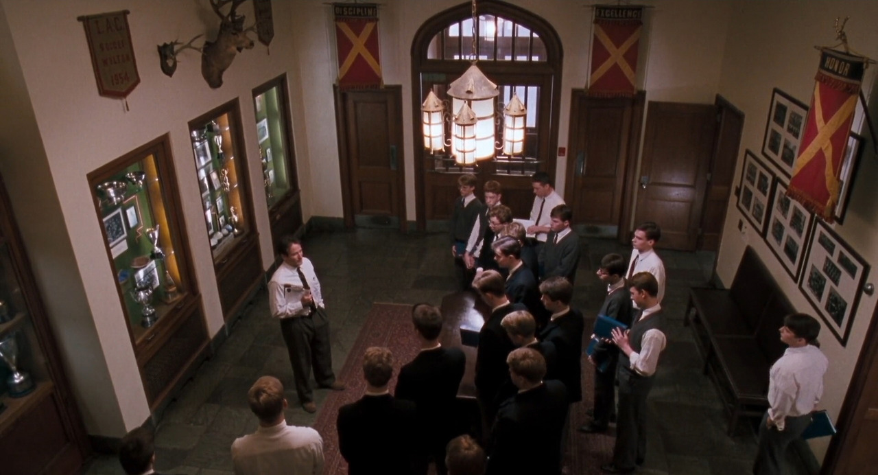 존 키팅 선생은 첫 수업을 하며 학생들에게 ‘불가능한 꿈을 꾸는 리얼리스트’의 면모를 여지없이 보여줬다. 여태껏 만나왔던 교사와는 달리, 전혀 의심조차 하지 않고 받아들였던 ‘현재를 희생물 바쳐라’는 정언 명령과는 달리, ‘현재를 즐겨라(Seize The Day-Carpe Diem)’라는 말에 학생들은 어리둥절할 수밖에 없었다.