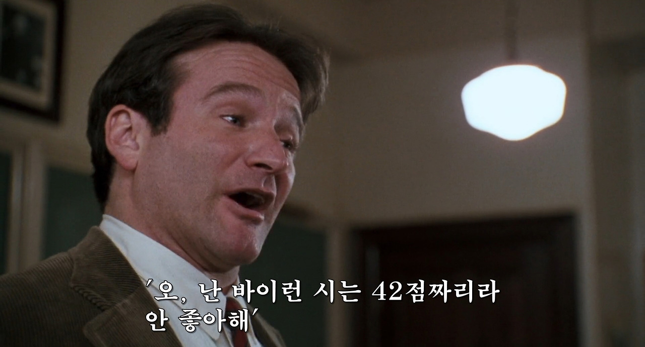 하지만 그렇게 실망이 점차 현실이 되려던 그 순간, 키팅은 학생을 바라보며 “(서문의 내용은) 쓰레기”라고 외친다. 아마도 실제로 교실에서 교사가 저런 말을 했다면 누군가는 ‘세상에 어떻게 교사가 저런 욕설을 아무렇지 않게 하지’라며 깜짝 놀랄지도 모른다. 하지만 키팅에게 시를 두 가지 항목으로 평가할 수 있다는 발상 자체가 모욕적인 일이었기에, 그 감정을 담아 말을 한 것뿐이다. 잘못된 것을 보고서, 부조리한 것을 보고서 욕을 할 수 있는 것이야말로 가슴 뜨거운 사람의 특권이라 할 수 있으니 말이다.