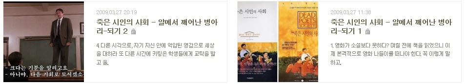 하지만 아무리 영화적으로 그런 모습들이 아름답게 그려졌다고 해서 간과하지 말아야 할 것이 있다. 그건 이게 어디까지나 극화된 내용이며, 교육의 장은 여러 욕망이 상충되는 공간이기에 일차원적으로 보아서는 안 된다는 사실이다. 그러니 교육 현장에서 무작정 키팅처럼 했다간 교사는 교사대로 상처만 받고, 학생은 학생대로 더욱 더 맘을 닫을 가능성도 충분히 있다. 그렇기 때문에 이쯤에서 제격인 말은 ‘영화는 영화일 뿐, 따라하지 말자’다.