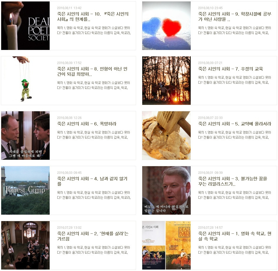 처음 『죽은 시인의 사회』 영화의 감상평을 썼던 것은 2009년이었다. 그 당시엔 심혈을 기울여 썼지만, 이대로 묻어버리기엔 아까운 마음이 들어서 7년이 지난 지금 새롭게 편집하여 올릴 마음에 시작하게 됐다.