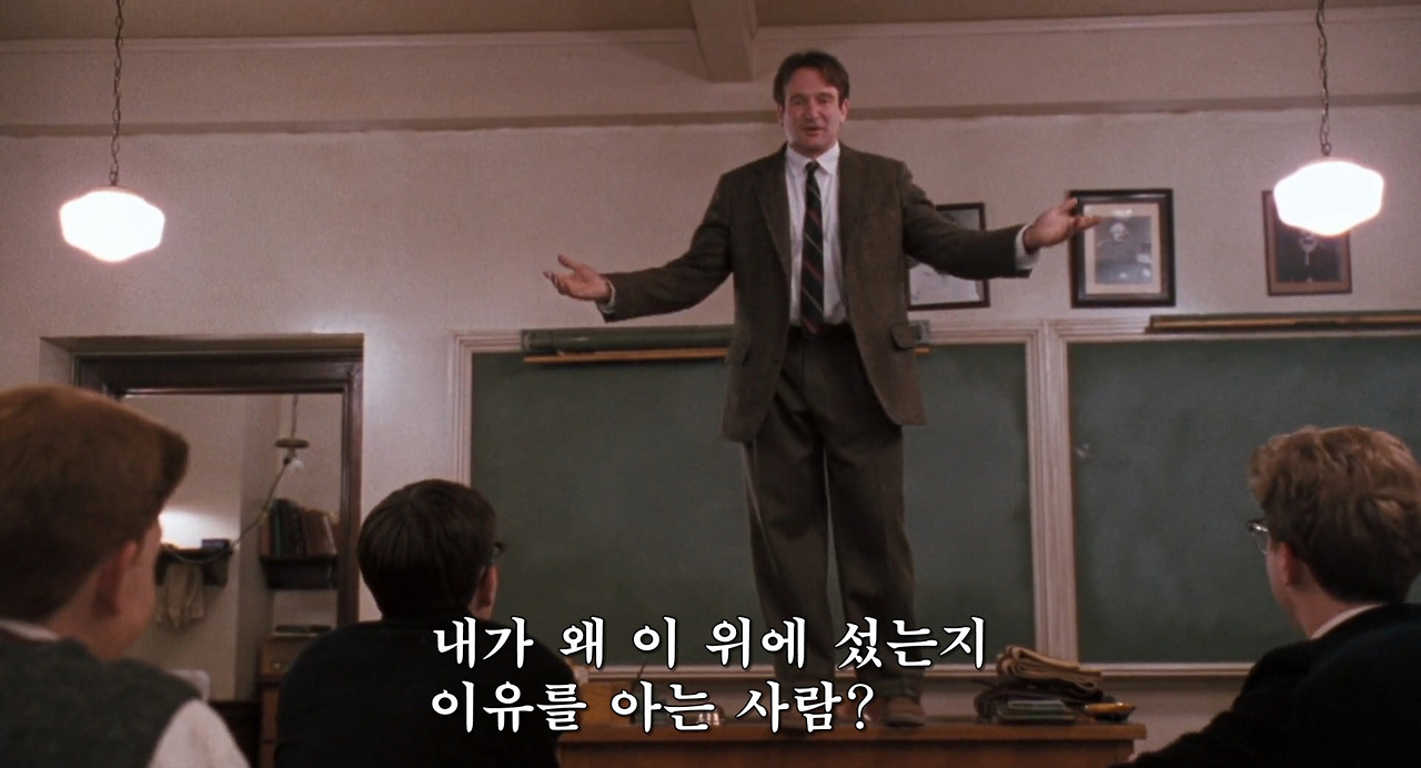 『죽은 시인의 사회』는 1950년대 미국의 한 학교를 배경으로 하고 있다. 한국과는 무려 60년 이상의 시간차가 있음에도, 그 학교에서 일어나는 일들이 전혀 낯설거나 이상하게 보이지 않는다. 얼핏 생각하면 그만큼 선진적인(?) 미국의 교육제도를 잘 따라갔다고도 볼 수 있지만, 그보다는 미국은 예전부터 경쟁주의의 사회였고 한국도 그런 풍조가 있었으나 IMF 이후 신자유주의 체제를 받아들이며 급속도로 닮아갔다고 보는 게 맞다.