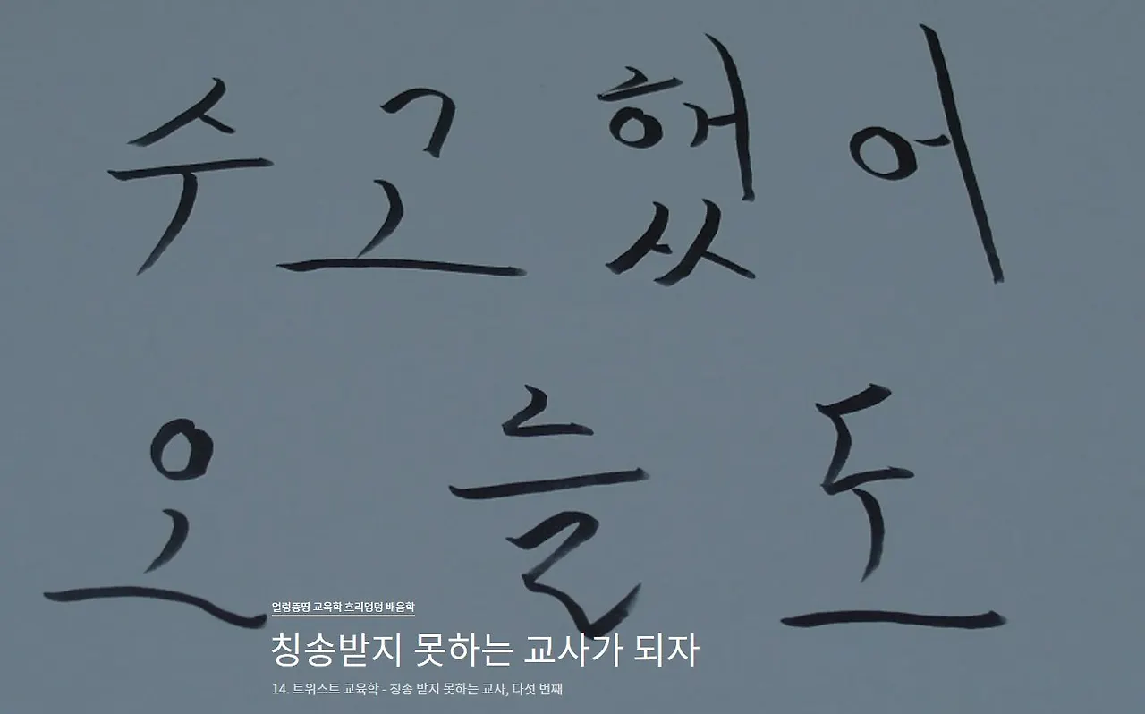 그래서 민쌤은 “평범한 교사들이 그냥 교사생활을 하더라도 그게 교육이 정상화되는 데에 기여할 수 있어야 하는 거죠”라는 말을 했는데, 이 말은 동섭쌤이 말한 ‘칭송받지 못하는 교사가 되자’라는 말과 맞닿아 있는 말이라 할 수 있다. 교사가 열정적이라고 학생들이 열정적이게 되는 것도 아니며, 교사가 앞서 간다고 학생들이 뒤따르는 것도 아니니 말이다.