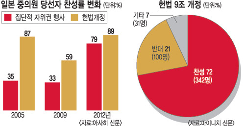 자민당 정원인 아베 정권이 들어선 이후 일본의 이와 같은 기조는 더욱 분명하고 강경해졌다. 그러다 보니 심지어 ‘평화헌법’까지 손을 대기에 이르렀다. 그 내용은 군대에 공격할 수 있는 권한을 줌과 동시에 분쟁 지역에 파병할 수 있도록 한 것이다. 이에 한국과 같이 제국주의 일본에 의해 수많은 피해를 입은 주변국들은 ‘대동아공영大東亞共榮’을 외치며 조선과 청을 쑥대밭으로 만들어놓았던 과거를 떠올리며 비판할 수밖에 없었던 것이다.
