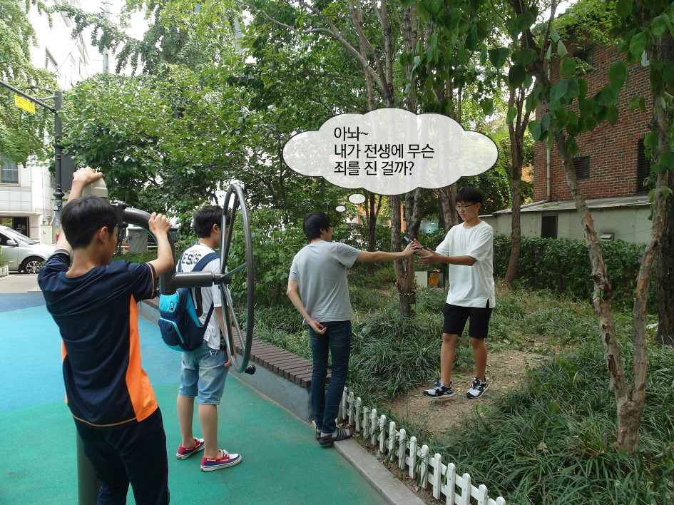 하지만 사람이 모여서 하는 일이니 변수가 없을 수는 없다. 이번엔 적극적으로 시나리오를 얘기하고 전면에 나서서 이끌어 간 한 학생은 현세와 규빈이었다. 이 둘이 회의 시간 내내 분위기를 주도하며 이끌어갔으니 말이다. 그래서 규빈이가 거의 시나리오를 완성했으며, 현세가 그걸 토대로 촬영을 하고 편집을 하면 됐다.