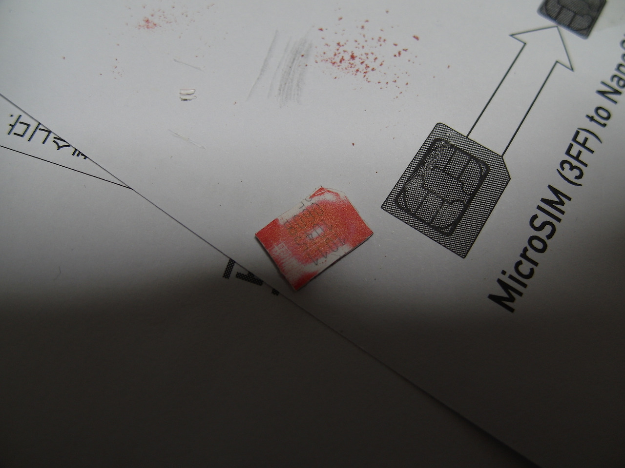 하지만 문제는 그것뿐만이 아니었다. 두께까지도 차이가 있었기 때문이다. 마이크로 유심은 0.76mm의 두께인데 반해, 나노 유심은 0.67mm로 미세하게 좀 더 얇았다. 그러니 크기만 맞았다고 무턱대고 삽입했다간 아예 빼지 못하는 상황에 처하게 된다. 그래서 칼로 살살 유심의 뒷면을 긁어 어느 정도 얇게 만들었다.