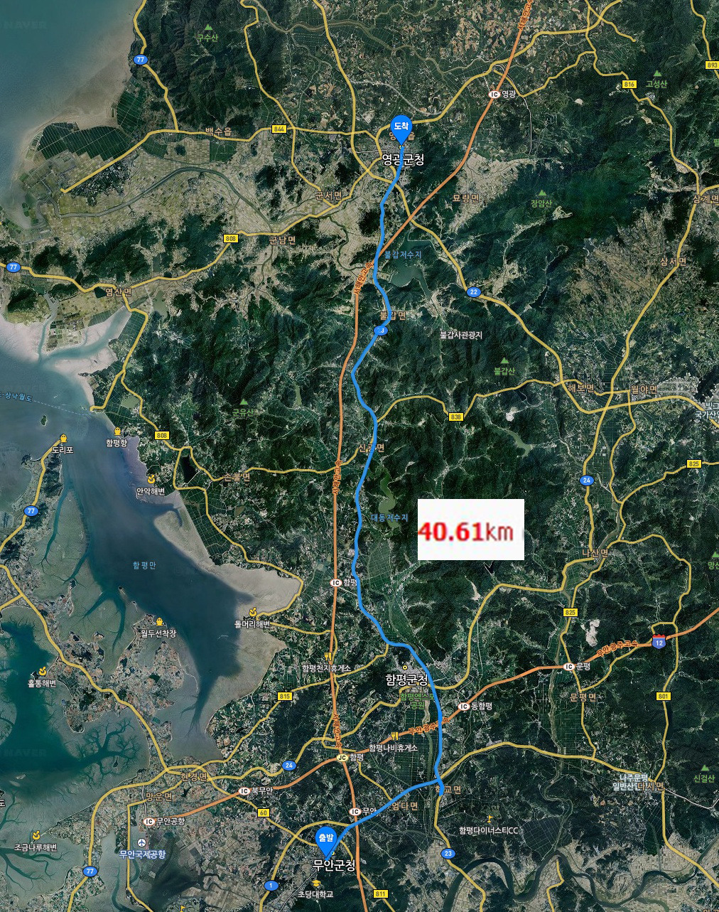 김밥 두 줄을 사고 무작정 걷기 시작했다. 오늘 목표는 영광(40.61km)까지다. 애초에 함평까지만 가려 했는데 12.76km로 4시간 정도 걸으면 충분히 갈 수 있는 거리로 매우 짧은 편이어서 좀 더 무리를 하기로 했다. 더욱이 내일은 수요일이다. 시간에 맞춰 신림에 도착할 수 있다면 오랜만에 교인들도 만나고 예배도 드리며 편하게 잠도 잘 수 있다. 그러니 서두를 수 있을 때 서둘러야 한다. 과연 이게 만용인지, 여행을 시작하는 사람의 의욕인지는 오늘 내일을 경험해봐야만 안다.