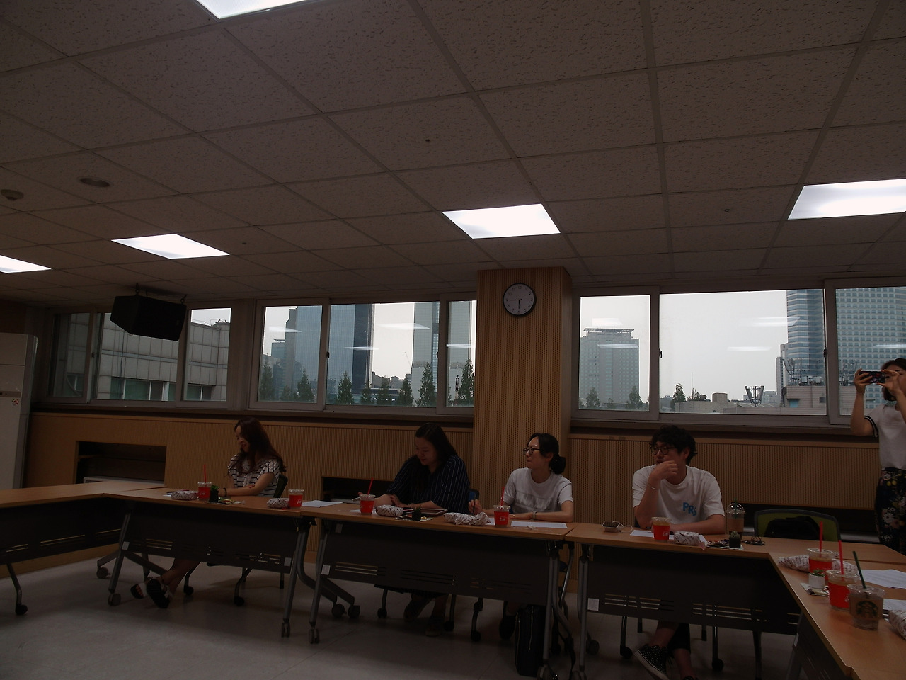 자리엔 커피와 샌드위치, 그리고 몇 가지 간식거리가 올려 있었고, 주위엔 몇몇의 선생님들이 보였다. 1월에 길잡이 교사 연수를 했을 때 봤던 선생님들도 보이니 마음이 한결 가벼워지더라. 다시 한 번 창 너머로 보이는 고층건물들을 보면서 ‘신나게 배워보자’라고 맘을 다잡았다.