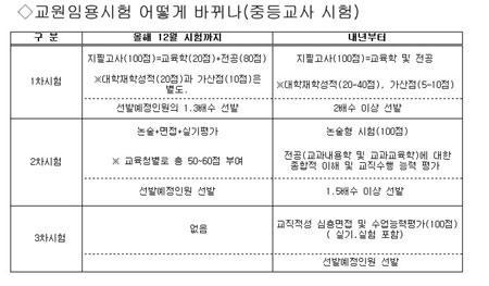 2008년부터 임용 제도는 크게 바뀌었다. 원랜 2차 시험으로 1차에선 전공과 교육학을 시험 보고, 2차에선 수업 실연과 면접, 그리고 논술을 보면 됐지만, 이 해부턴 3차로 변경되었다. 그래서 1차엔 객관식으로 출제된 전공과 교육학을 풀어 합격자의 2배수를 뽑아내고, 2차에선 단답형과 논술형으로 출제된 전공을 풀어 1.5배수로 압축한 뒤, 3차에 수업실연과 면접을 봐서 합격자를 걸러내는 것이다.