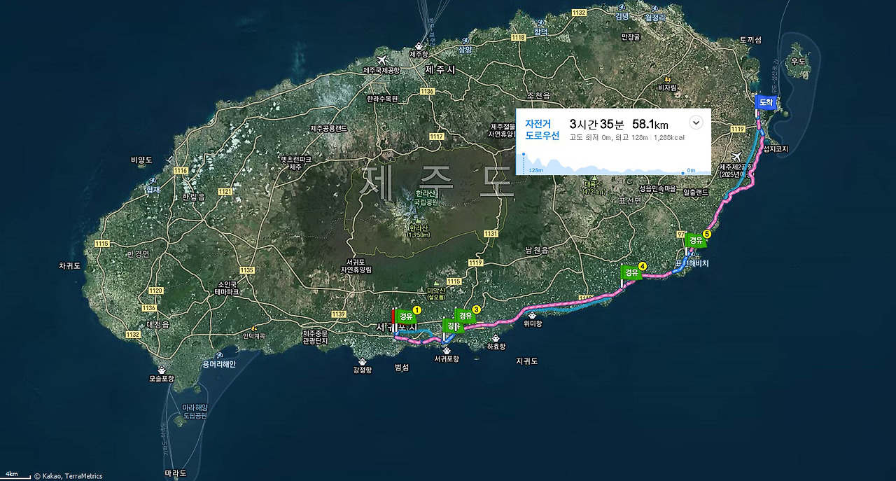 이로써 앞으로 4시간 30분 정도를 더 달려야 하고 중간에 점심밥까지 먹으면 시간은 더 늦어질 것이다. 정방폭포까지 들렸다가 가면 어제처럼 늦은 저녁까지 달려야 할 게 분명했고, 오늘은 저녁부터 비 예보까지 있기에 그곳은 다음에 가기로 했다. 마음을 정하고 나니 한결 가벼워졌다. 우선은 표선까지 가서 점심부터 먹고 보자.