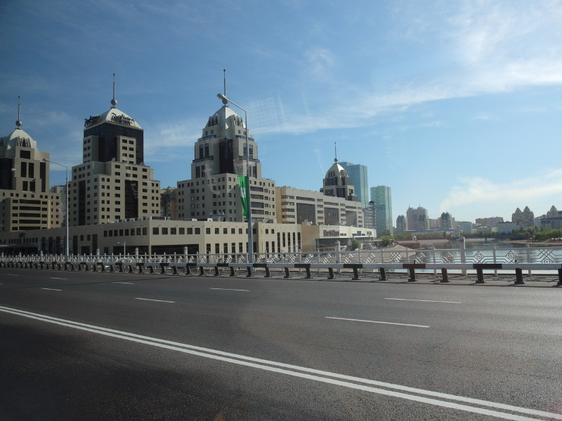 역에서 나와 혜린이와 잠시 헤어져야만 했다. 혜린이는 속이 좋지 않아, 굴심쌤 언니댁에서 쉬며 저녁을 먹으러 갈 때 같이 합류하기로 했기 때문이다. 역 밖으로 나오니 우리의 발이 되어줄 차가 기다리고 있었다. 차를 타고 시내 한복판에 들어섰다. 21시간을 달려서 도착한 곳에도 카자흐스탄이 있다는 게 신기했다. 구도시는 역시나 오래된 도시 같은 느낌이 났다. 하지만 이심강 서쪽의 신도시는 전혀 다른 세상 같았다.