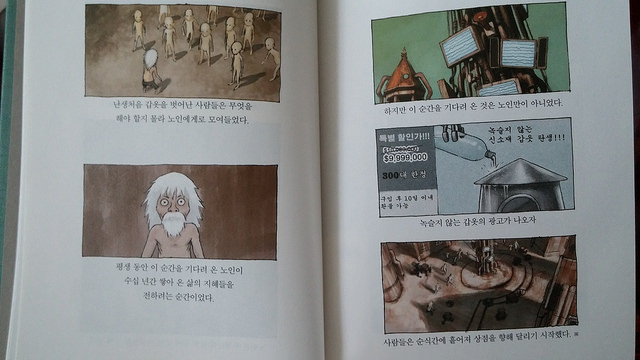 절친 중에 사회적 모순에 대해 관심이 있는 친구가 소개해 준 『지금은 없는 이야기』라는 책을 통해 최규석 작가를 알게 되었다. 그래서 별 생각 없이 그냥 읽기 시작했는데, 「갑옷도시」를 읽는 순간 눈이 번쩍 뜨일 정도로 충격을 받았다. 갑옷이란 은유를 통해 사람이 어떻게 체제에 복종하게 되는지, 그리고 어떻게 억압을 자연스러운 것으로 받아들이게 되는지, 어떻게 주인의 덕목을 내팽겨 치고 노예의 덕목을 고수하게 되는지 비유적으로 보여주고 있었기 때문이다. 그 순간 동화에는 해피엔딩이 있지만, 현실에는 지리한 삶만 있다는 사실을 알 수 있었다.