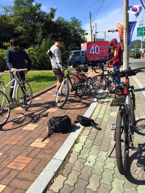 터미널까지 들어가지 않고 정류장 같은 곳에서 “현풍터미널에 도착했습니다”라는 기사님의 말을 들으니 우리는 깜짝 놀랄 수밖에 없었다. 전혀 준비하고 있지 않다가 그 말을 듣고서야 헐레벌떡 내릴 준비를 하게 되었으니 ‘준비태세’라도 걸린 양 정신이 없었다. 어찌 되었든 아이들은 피난 가듯 갑작스레 짐을 챙겨 내렸고 곧 바로 자전거를 꺼내기 시작했다.
