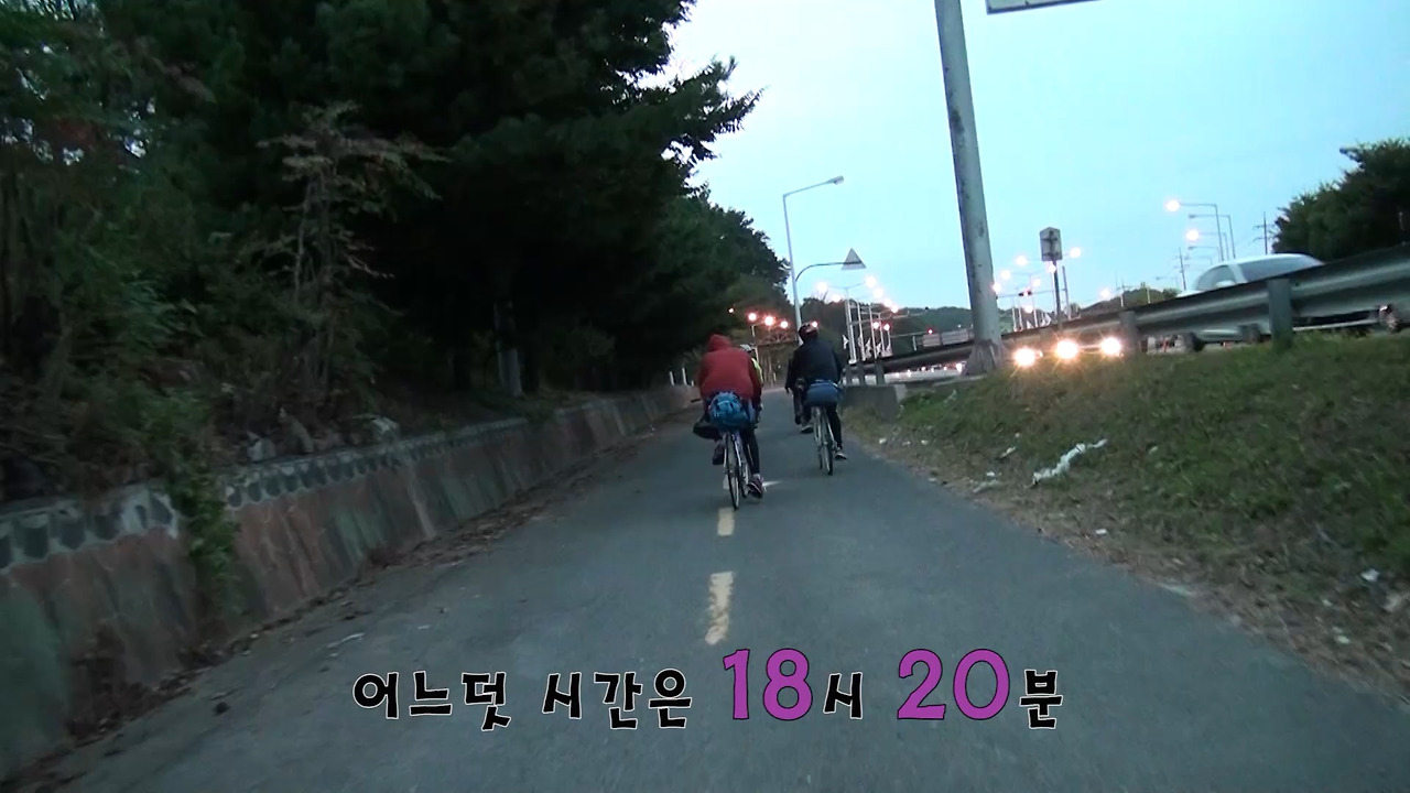 이미 시간은 6시가 훌쩍 넘어가고 있었다. 맹렬히 달려오는 차들의 무서움, 찜질방에 언제 도착할지 모른다는 불안, 어두워지는 만큼 서늘해져가는 기온이란 삼중고가 우리를 짓누른다. 불안한 마음은 두려움을 키우고, 두려워질수록 삶의 비극은 짙어졌다. 하지만 그렇다고 자리에 주저앉아 있을 순 없기에 페달을 밟을 뿐이다.