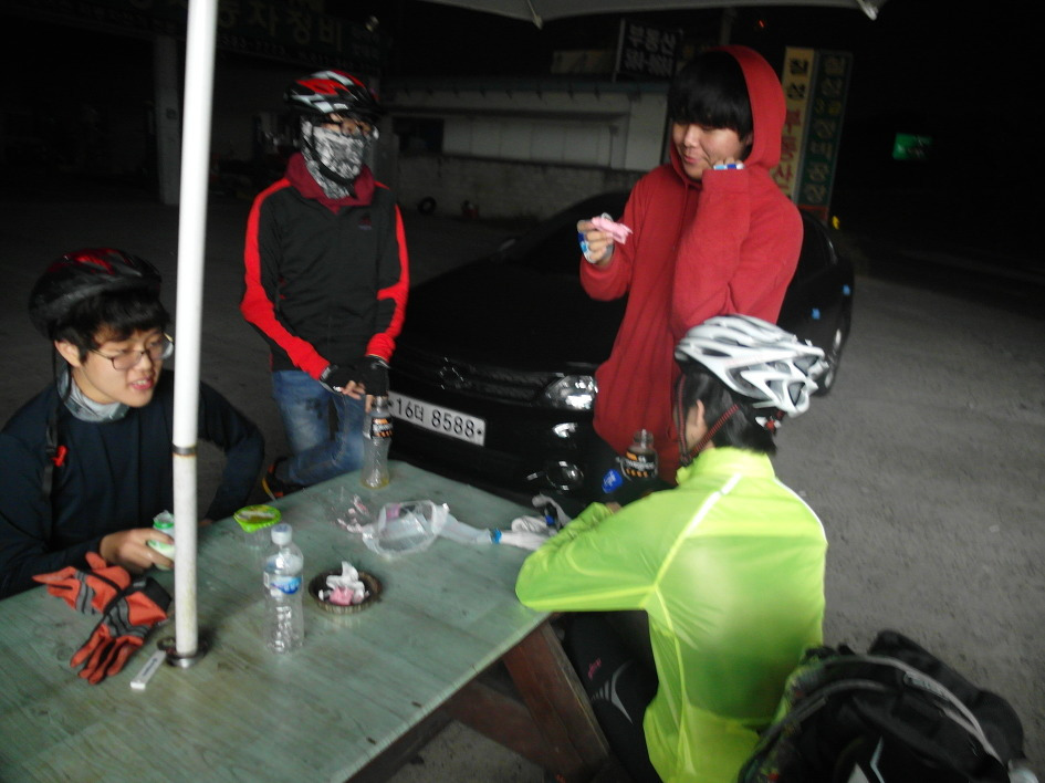 오늘은 별도의 리더가 정해져 있지 않음에도 민석이가 스마트폰으로 지도를 찾으며 길을 안내해줘서 편하게 갈 수 있었다. 찜질방으로 가기 위해서는 자전거 도로를 타다가 국도를 달려야 한다. 문제는 서서히 어두워지고 있다는 것과, 국도엔 차량 통행량이 많을뿐더러 차들의 속도도 장난이 아니라는 사실이다. 이곳에서 여차하면 쥐포가 되기 십상이겠더라. 하지만 국도를 6.3Km를 달려야 찜질방에 갈 수 있기에 다른 선택지는 없었다. 그래서 최대한 안전에 유의하여 발목에는 야광밴드를 차고 갓길로 조심해서 달려야 했다.