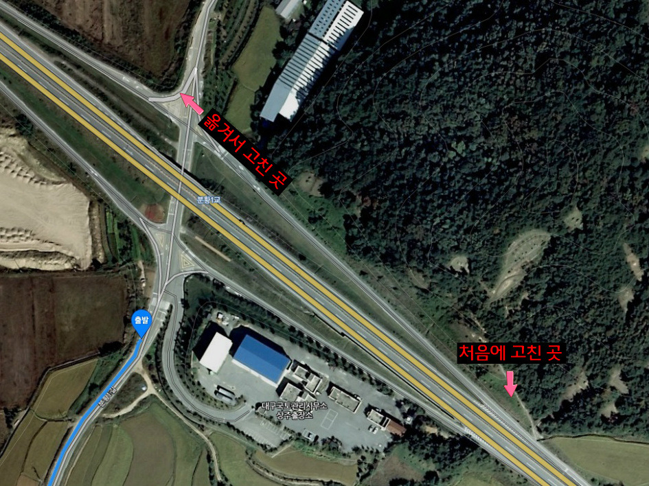 분황1교 쪽에서 갓길로 내려와 일반도로에 진입하니 가로등이 켜져 있더라. 그곳이라면 수리하기 편할 것 같아서 자리를 잡았다. 혹시 ‘펑크를 확인하기 위한 물’을 구할 수 있는지 살펴보니, 그런 건 없더라. 그 때 내 자전거를 잠시 살펴보면서 무언가 이상하다는 생각이 들었다. 자전거 핸들 중앙에 늘 있었던 캠코더가 흔적도 없이 사라진 것이다. 캠코더를 고정하고 있었던 고릴라포드스탠드의 윗부분이 빠져버린 것이다. 아마도 국도에서 내려오는 길에 떨어졌을 거라고 생각했다. 두 번째 불행이다.