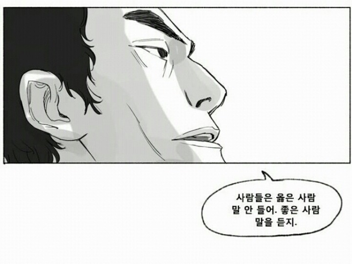 최: 70학번들도 ‘송곳’의 구고신과 비슷한 얘길 하긴 하는데, 그걸 아주 길게 할 뿐이다(청중 웃음). 그런데 만화에서는 긴 대사를 할 수가 없어서 최대한 압축적으로 쓰다 보니, 명언처럼 써지게 된 것이다. 그렇게 하려 해서 됐다기보다 아주 실용적인 이유 때문에 그런 대사를 쓰게 된 거다.