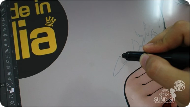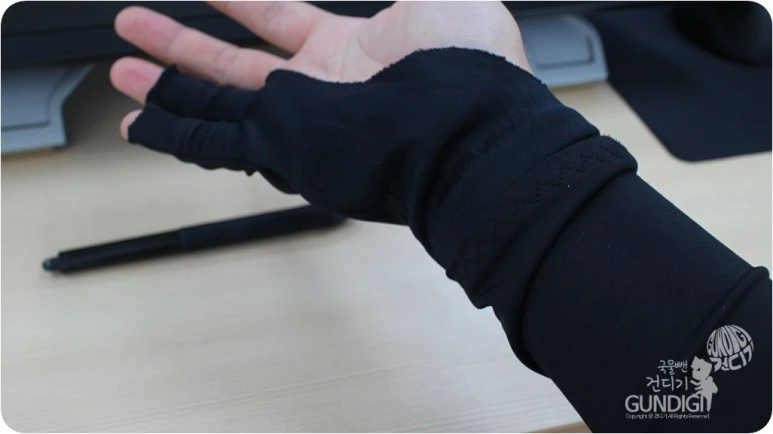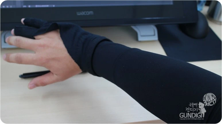 드라마상에서는 작업시에 그냥 그리기도 하는 장면이 있는데 그랬다간 손에 있는 유분이나 땀이 모니터에 묻어서 금새 슬라이딩이 뻑뻑해지거나 펜끝이 우둘투둘해져 작업하기 힘든점이 있어요.
