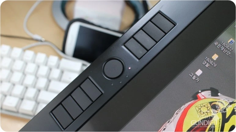 모니터 타블렛을 사용할 때에는 가급적 키보드가 작을 수록 좋아요. 블루투스 키보드도 좋겠지만.. 연타의 단축키를 누를때 시간차가 생겨 주로 유선 미니 키보드를 이용하곤 합니다.