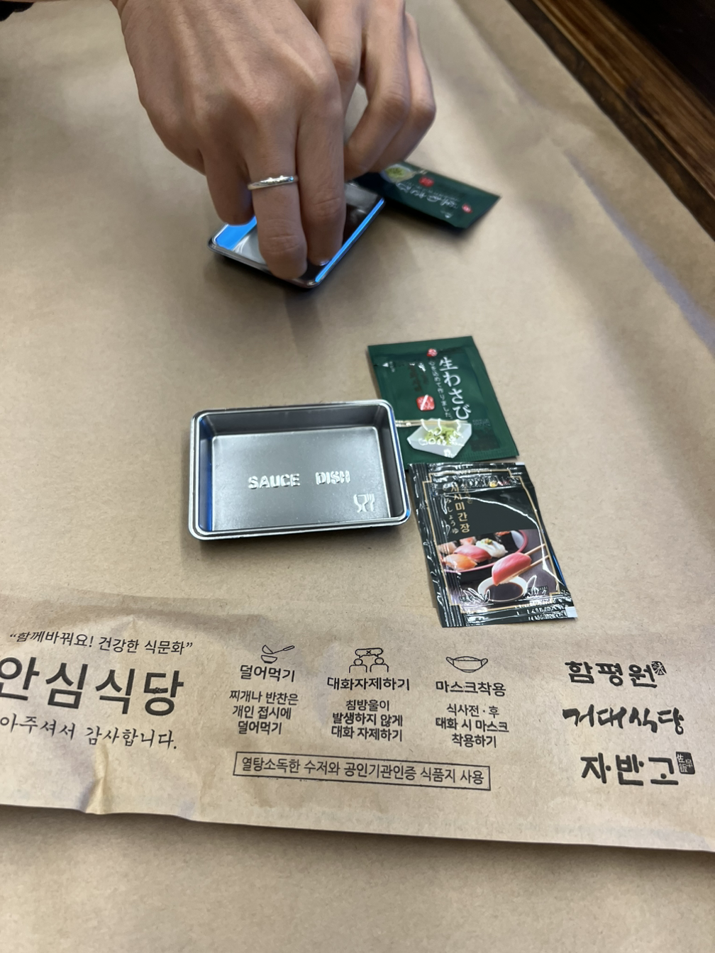 간장종지, 간장, 와사비는 테이블에 기본적으로