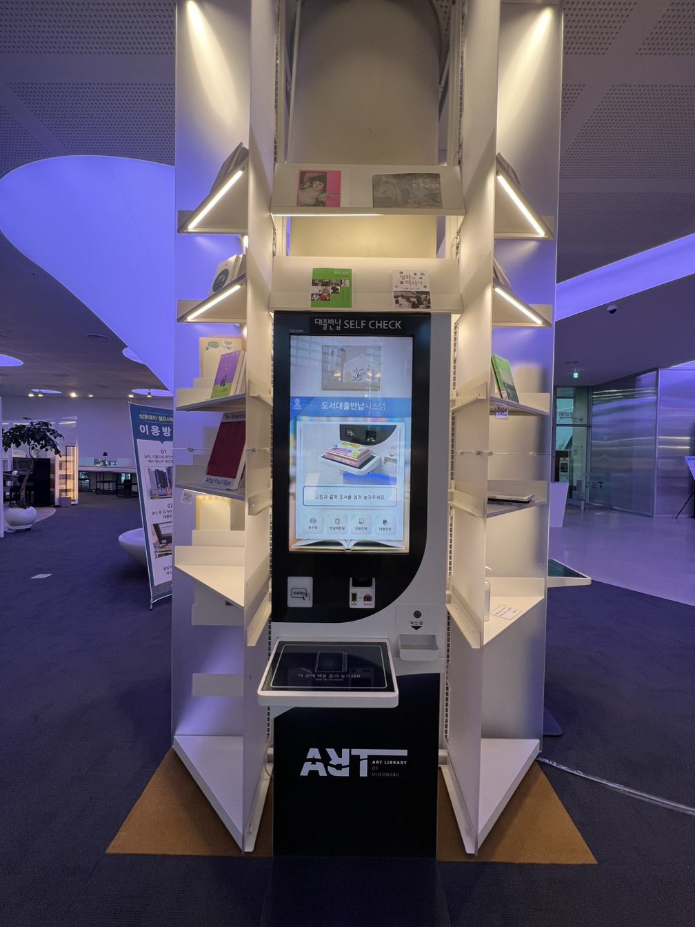도서 대출 및 검색은 키오스크를 활용하실 수 있어요.
