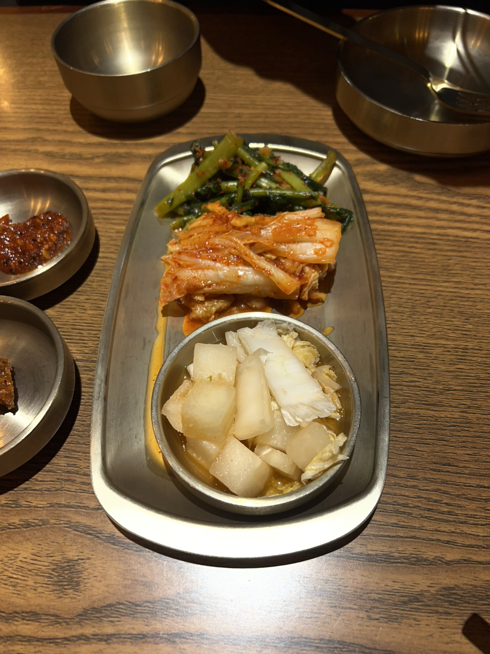 기본 반찬은 김치류, 무-배추 간장절임이 있고,
