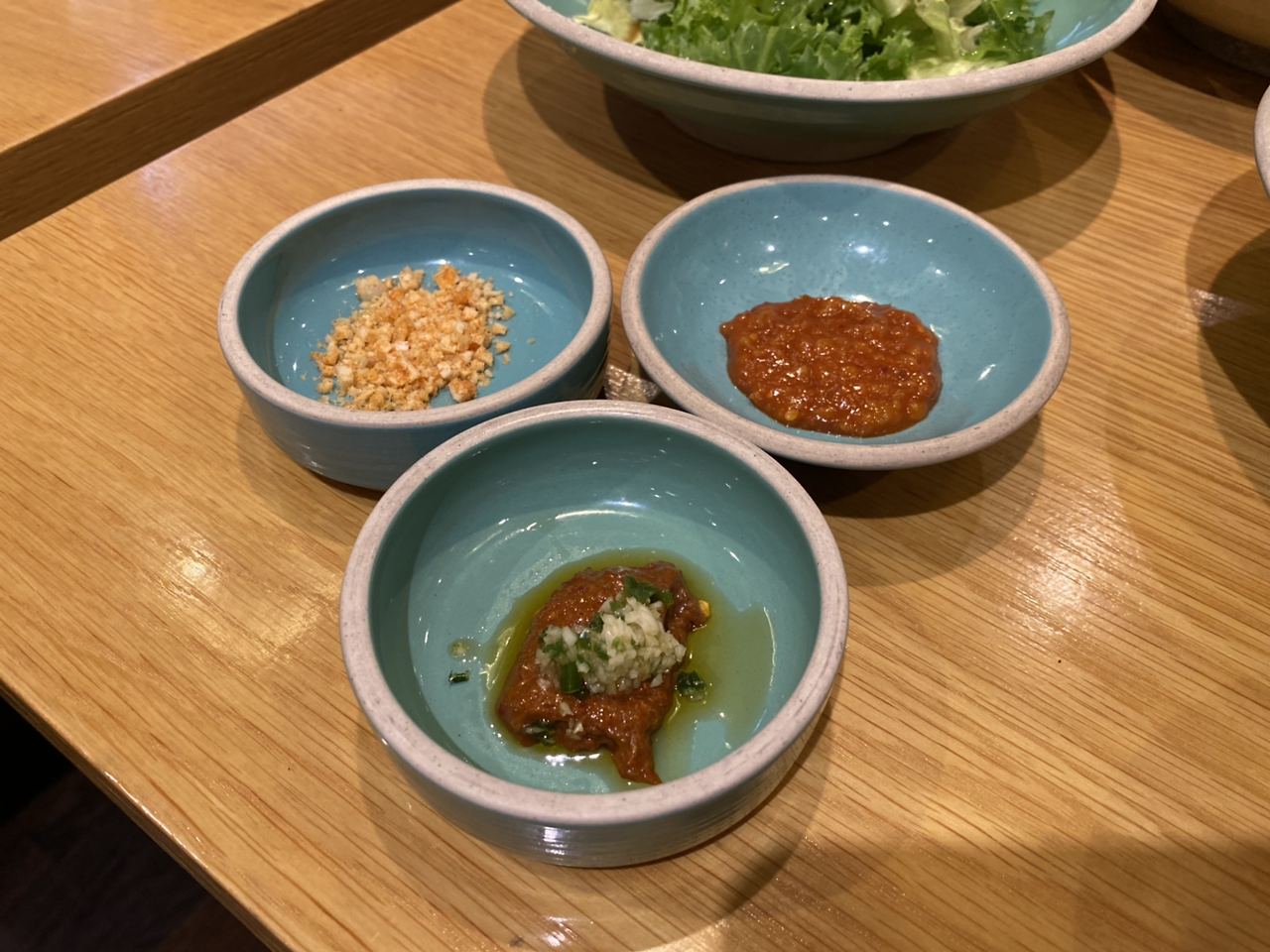그리고 오른쪽은 고기와 함께 곁들이는 양념들 입니다.