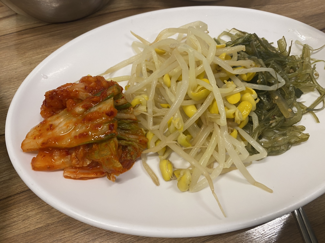 김치, 콩나물, ... 마지막건 모르겠다... 그날 그날 조금씩 달라요 /