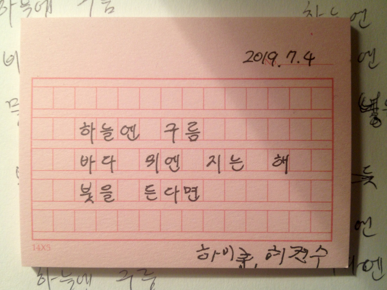 #하이쿠 #시 #정형시 #계절시 #7월 #여름 #붓 #일상 #순간 #제주 #찰나 #구름 #바다 #지는해