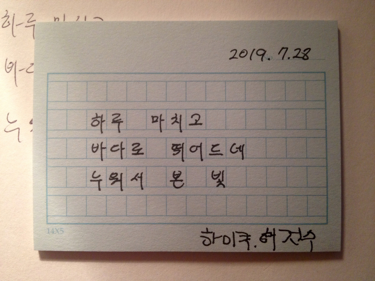 #하이쿠 #시 #정형시 #계절시 #바다 #밤바다 #밤수영 #일상 #순간 #제주 #찰나 #퇴근