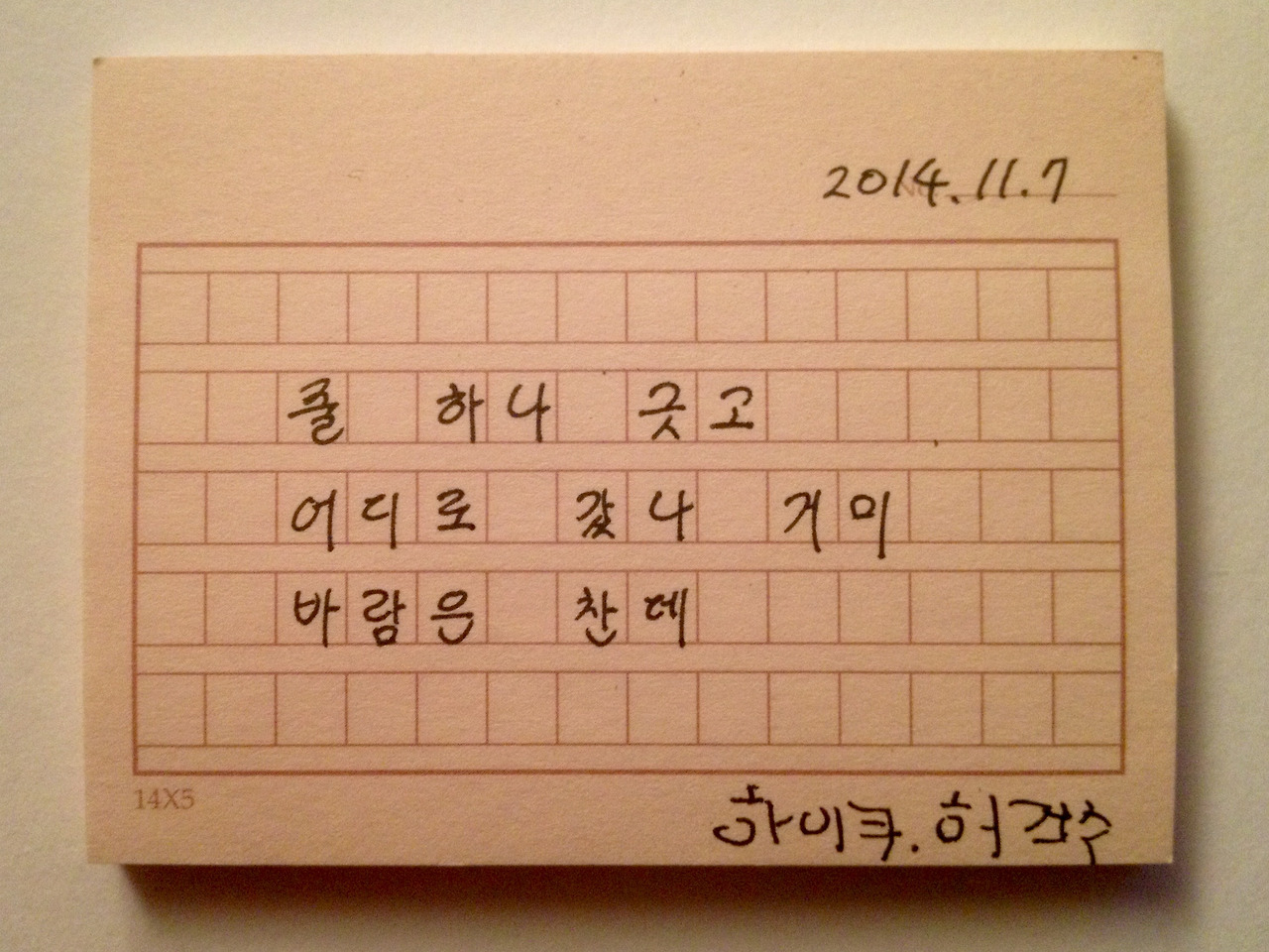 어제 오늘 제주 또한 찬바람이 불기 시작했습니다. 집앞을 나서다 저도 모르게 이 때가 떠올라 일기를 뒤적이듯 글을 찾아보았습니다. 그리고 제가 처음 써본 하이쿠였습니다.