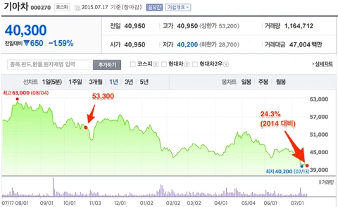 → 기아는 올해도 작년과 마찬가지로 하위권 그룹을 형성하고 있음.