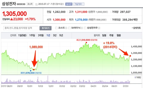 여전히 잘나가는 삼성의 주식은 상승세이고, 극적인 변화를 이루어낸 한화또한 극적인 주식가치 상승을 보이네요.
