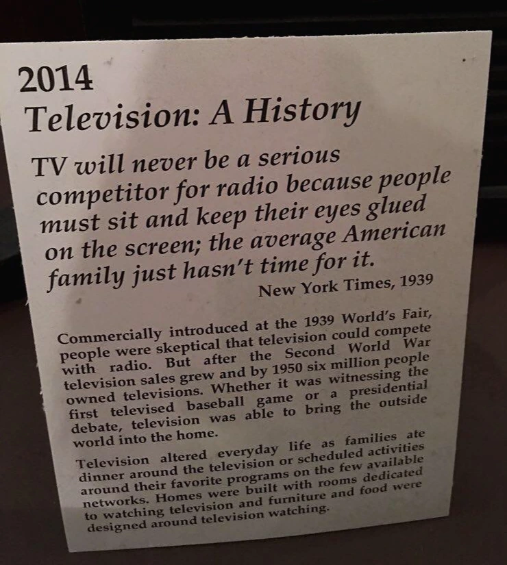 1939년 TV가 처음 등장했을때 뉴욕타임즈에서 한말이다.