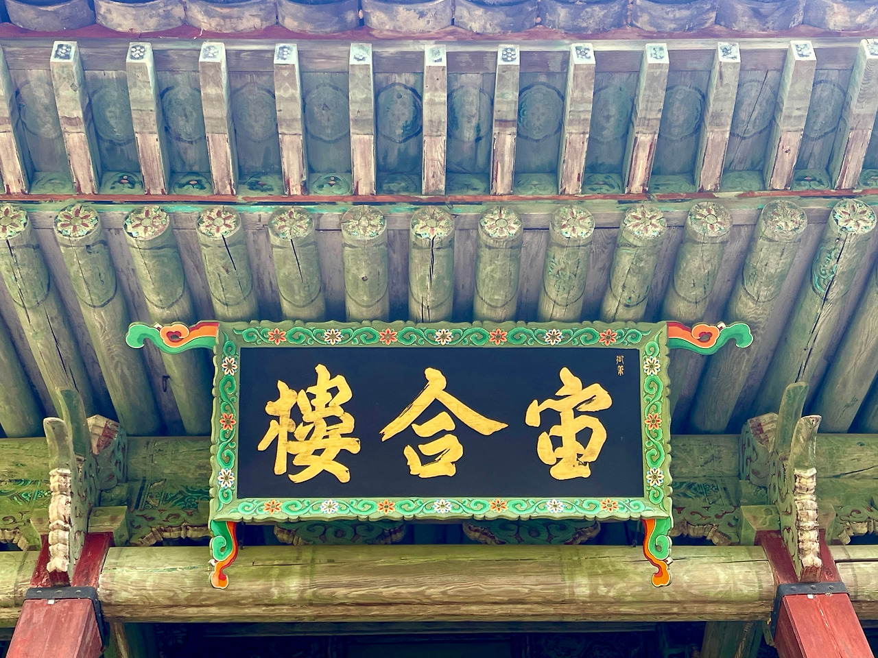 그러니까 누구도 이곳에 있는 신하들의 공부를 방해하지 말고, 신하들도 다른데 신경쓰지 말고 공부에만 집중하라는 뜻이었어요. 잠깐이었지만 정조 임금이 여기 주합루에 올라서는 어떤 풍경을 보았을지 상상하면서 어수문과 부용지 연못, 영화당 쪽을 내려보다 돌아왔습니다. ‘宙合樓(주합루)’라고 쓴 정조 임금의 글씨도 가까이에서 봤고요.