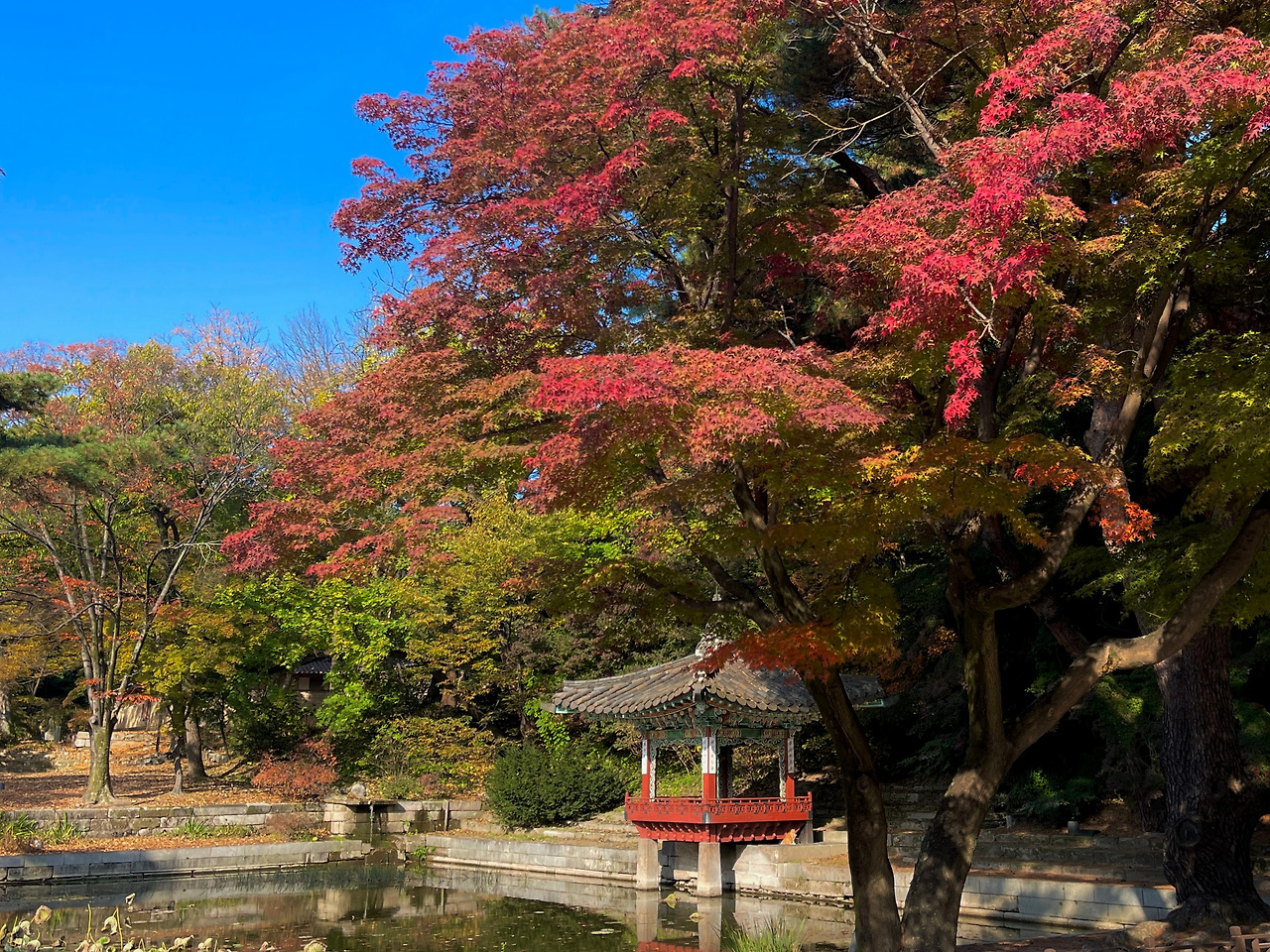 며칠 전(11. 5.) 창덕궁 후원 애련지와 애련정 모습입니다. 궁궐의 가을 풍경은 이번주말부터 일주일쯤 가장 예쁠 것 같습니다.