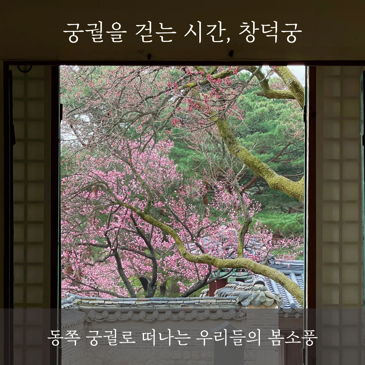 창덕궁은 조선시대 두 번째로 지은 궁궐입니다. 전체 다섯 개 궁궐에서 가장 오래된 나무가 살고, 곱고 예쁜 건물과 풍경이 많아 궁궐 산책하기 정말 좋은 곳이죠. 창덕궁에 온 봄 풍경이 궁금합니다. 함께 궁궐 소풍갈 분들 기다리겠습니다.