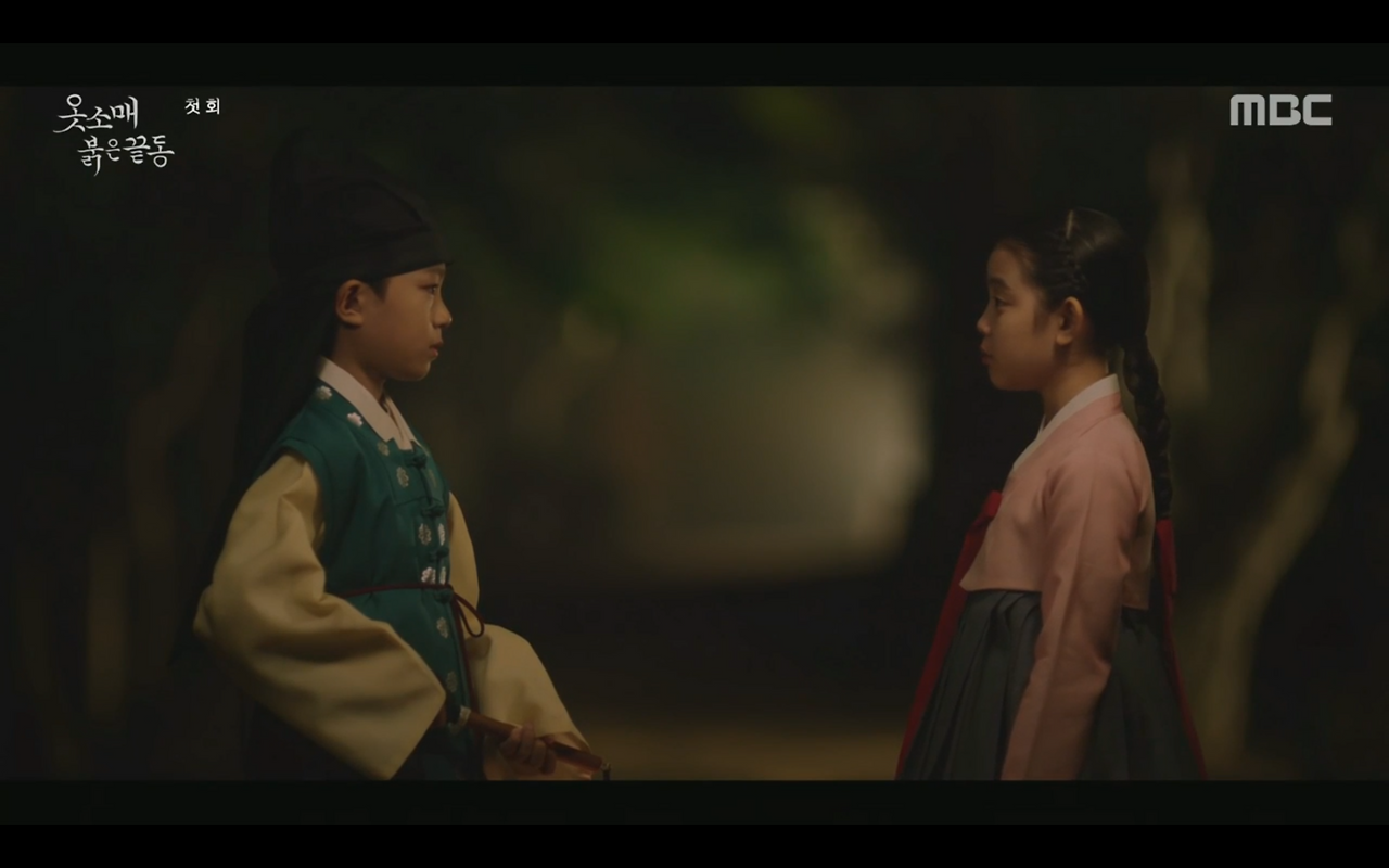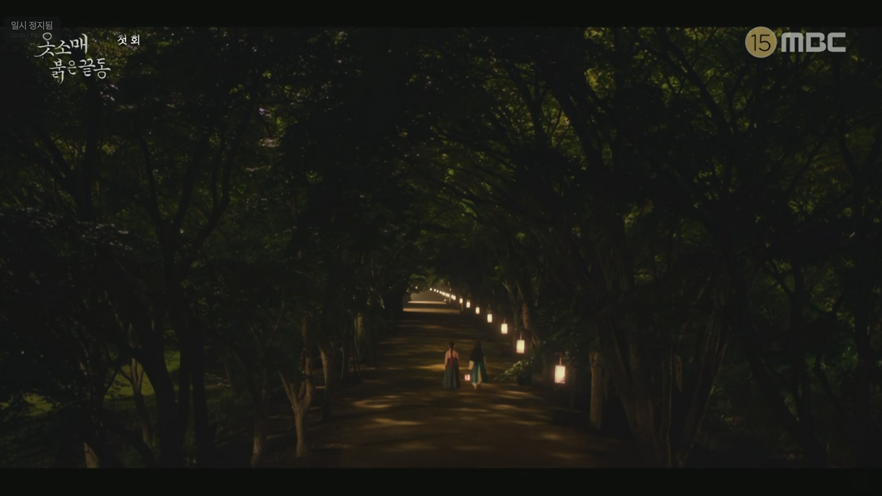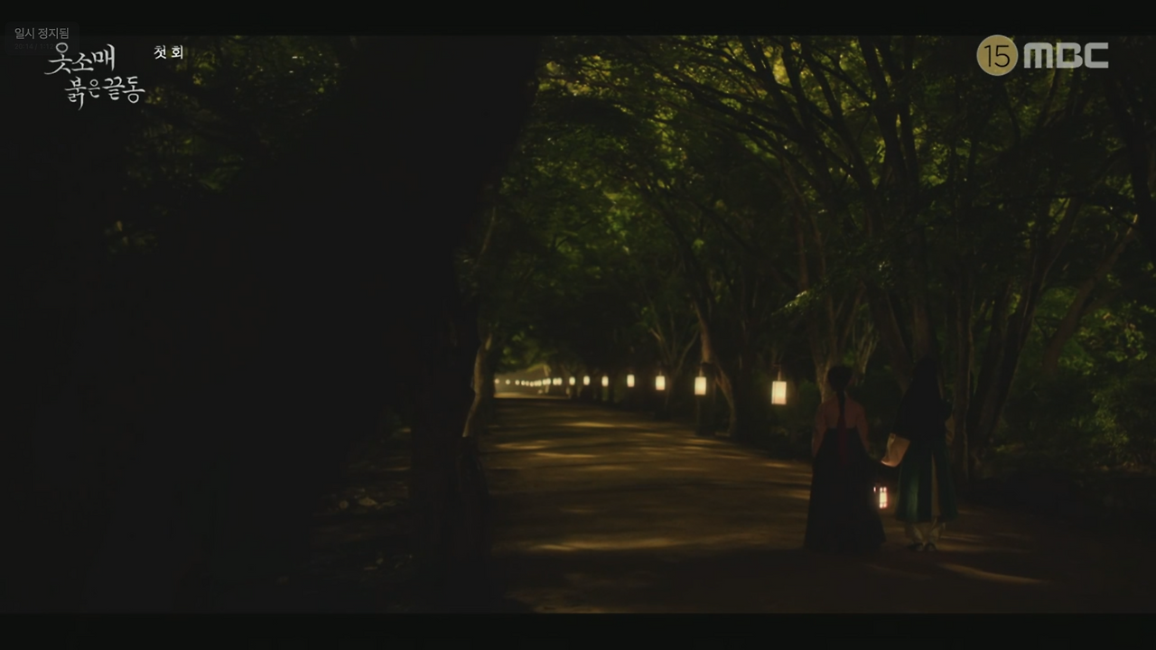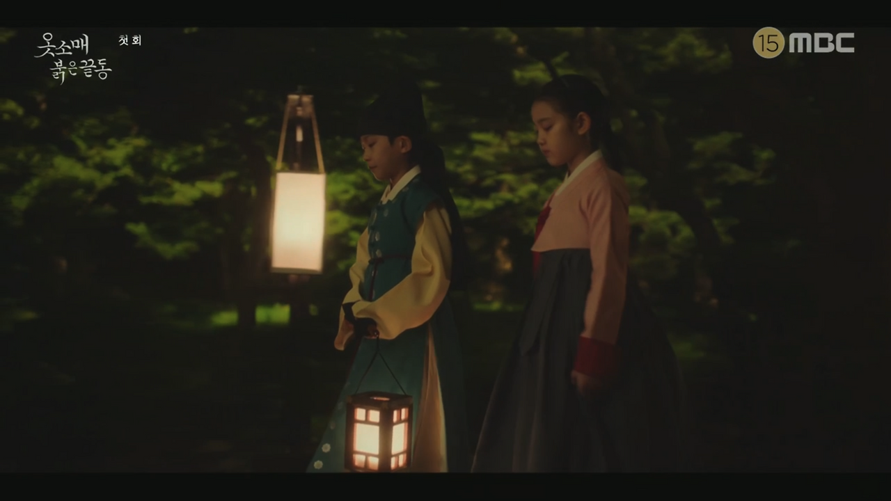 이 장면을 보면, 산은 까칠한 성격임에도 ‘하찮은 생각시’를 위해 등불을 들고 가는 수고를 마다하지 않더라고요. 그러면서도 의심합니다. 혹여 ‘여우가 둔갑술을 부려’ 이렇게 밤길에 나타난 건 아닌가 하고 말이죠. 의심하는 건 덕임도 마찬가지고요. 어린 산과 덕임을 연기한 두 배우의 케미가 무척 잘 어울렸습니다. 둘은 어두운 숲길을 걷다, 환하게 비춰주는 등불이 여러 개 걸린 길로 안전하게 들어섭니다.