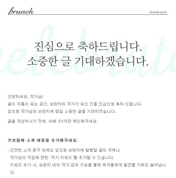 보다 많은 사람들이 브런치 작가가 되어 더 다양한 분야의 글들을 접할 수 있기를 희망한다.