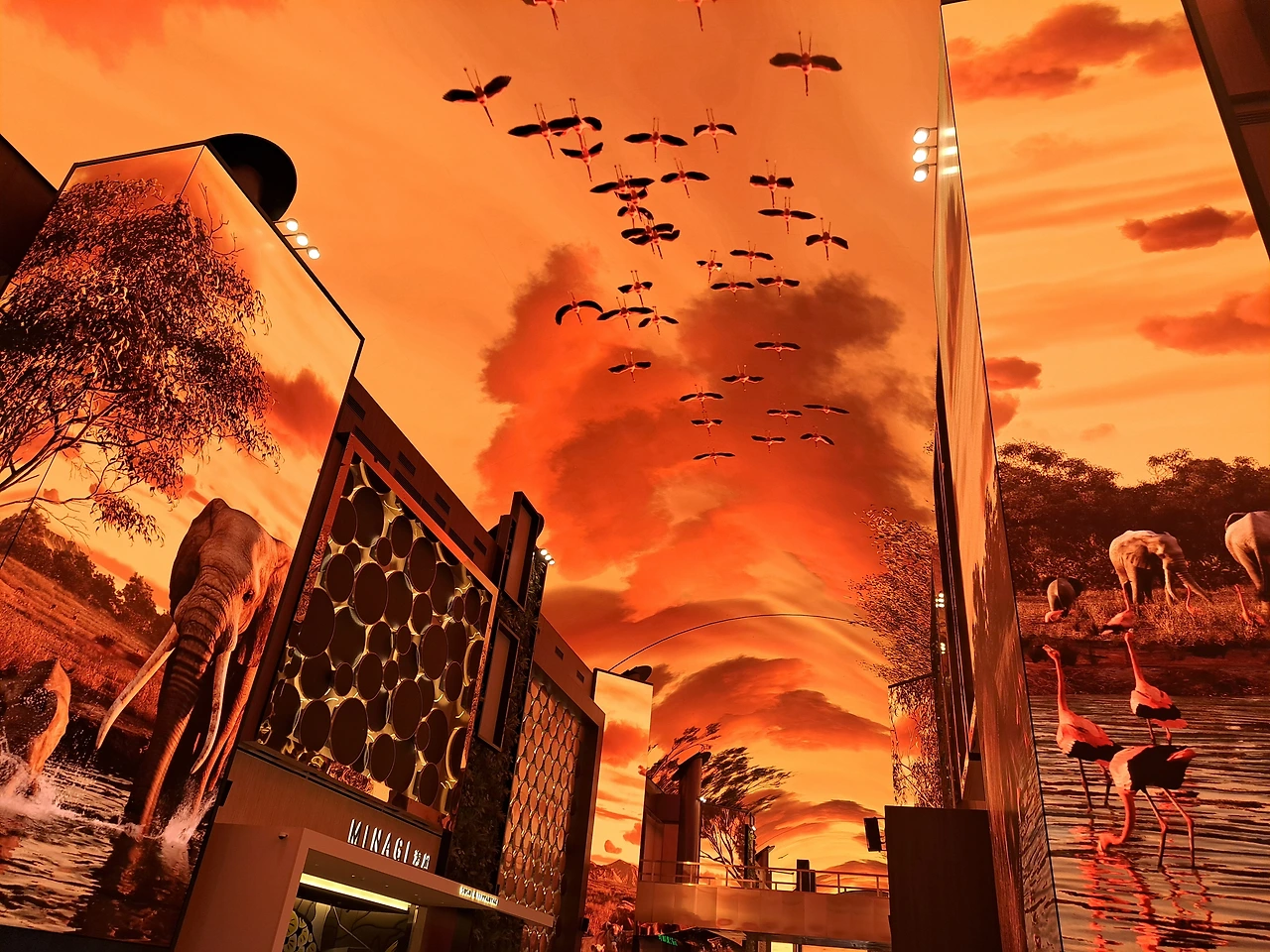 대형 영상을 보자마자 탄성이 절로 나왔다. 에스컬레이터를 타고 올라가니 사파리에 온 듯한 생각이 들 정도로 벽면과 천장에 동물 영상들이 가득 차 있었다. 벽면에는 코끼리, 미어캣, 치타, 천장에는 새 등 아프리카 초원에 온 듯한 착각에 빠졌다.