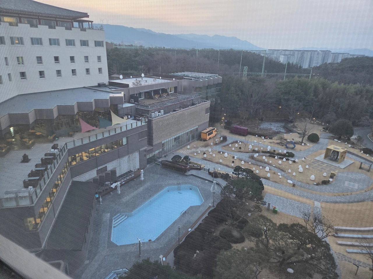 마지막 날. 호텔 조식을 먹으러 갔다. 부모님은 조식 먹는다니 좋아하셨다. 난 부모님 몰래 조식비를 결재했다. 다행히 부모님은 조식비용이 숙박비에 포함돼 있다고 생각하신 듯했다. 조식을 먹으러 가니 손님이 많아 식당이 가득 찼다. 먹거리도 많고 통창으로 보이는 바깥 풍경도 좋아 식사가 더할 나위 없이 좋았다.