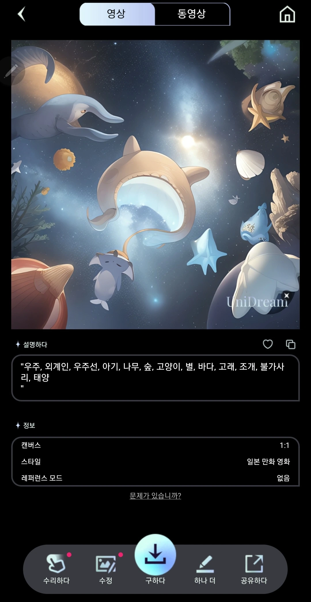 심심해서 그려본 AI 그림도 글자만 입력하면 알아서 그림을 창조해 준다.(요즘 관심 있는 단어를 무작위로 입력했다. 우주, 외계인, 아기, 나무, 숲, 고양이, 별, 바다, 고래, 조개, 불가사리, 태양)
