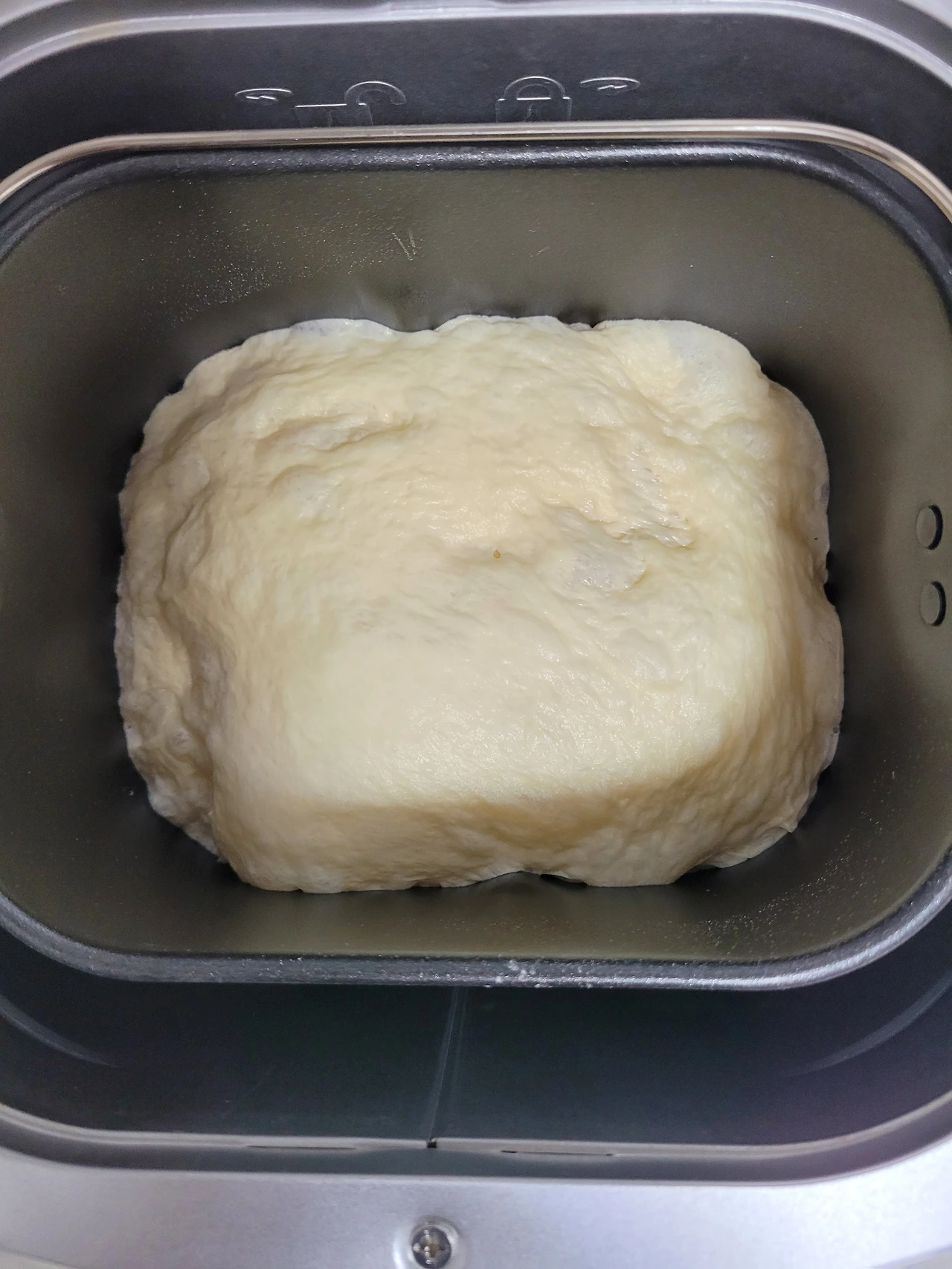저녁 11시쯤 작동시켜 놓고 잠을 청했습니다. 다음날 아침 7시쯤 열어보니 발효가 잘 돼서 부풀어 있었어요.