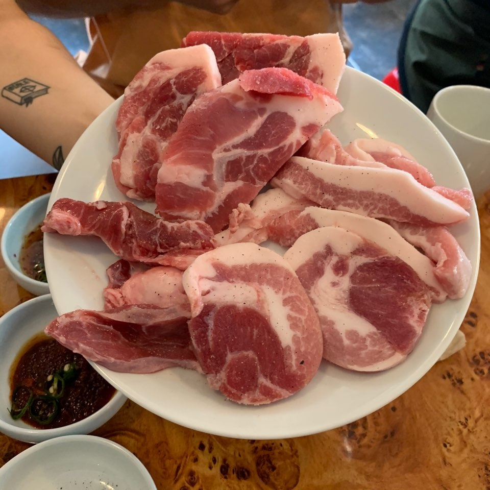 입장하는 순간, 보이지 않는 점원 때문에 살짝 속이 상할뻔 했다. 식당은 맛도 중요하지만 그 맛을 전달하는 직원들의 역할도 크다고 생각하기에, 손님의 입장에도 응대를 않는걸까 하는 생각에 서운할 뻔 하려던 찰나, 3곳의 테이블 사이드에서 굽기를 시전하던 아주머니들이 일어나며 응대해주어 깜짝 놀랐던게 입장부터 되게 인상깊었다. 본론으로 들어가보자