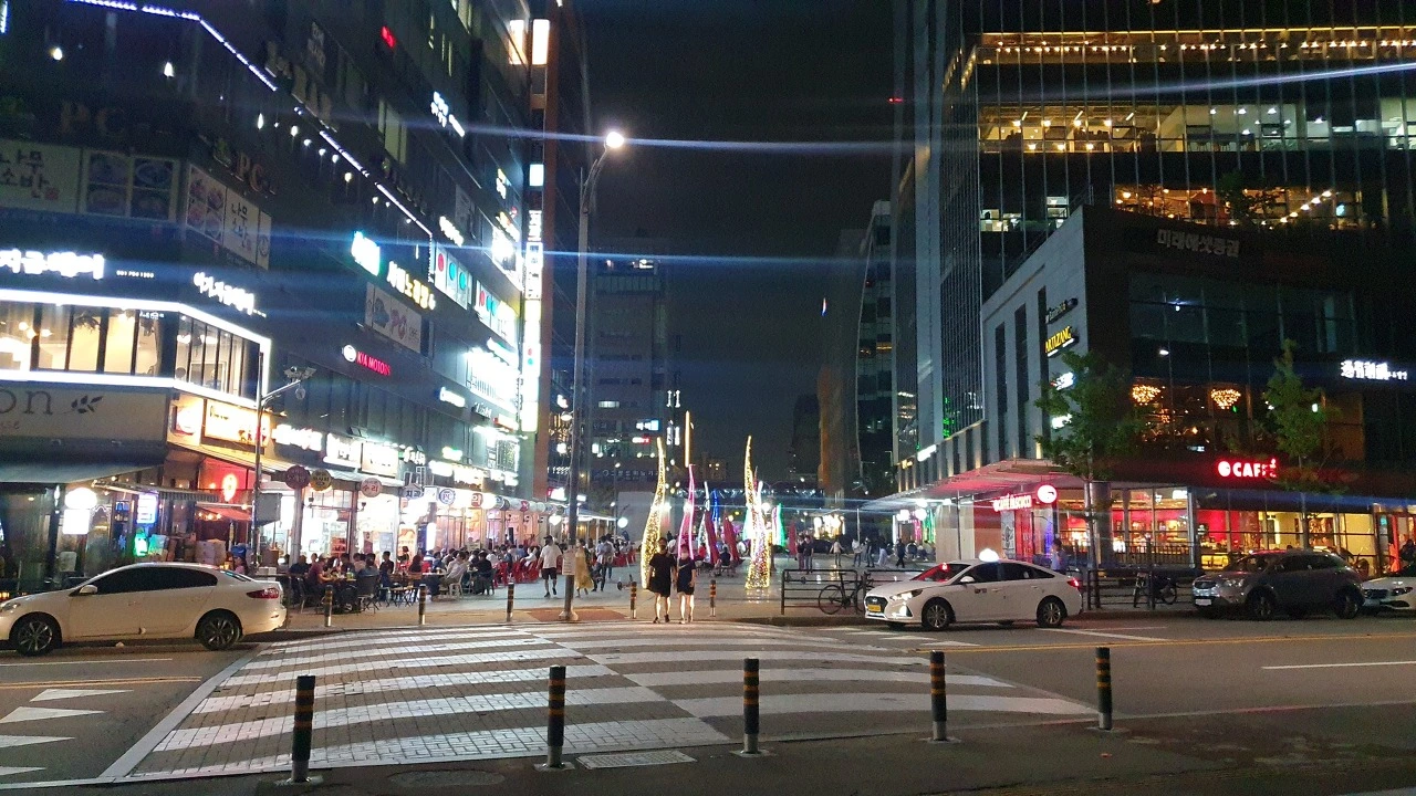 유난히 사람들이 많이 나온 점심시간에 이 거리를 걸어야만 활력이 느껴졌는데 그 이유를 이제야 알 것 같다. 주말은 거의 유령도시 수준으로 카페들도 문을 모두 닫는 동네이기 때문에 분위기를 제대로 느끼고 싶다면 '평일 낮'에 걷기 딱 좋은 거리이다. 캄캄한 밤에는 사람은 많지 않지만 그래도 화려한 간판들과 유리 건물들의 조명들 덕분에 지루함이 조금은 덜 한 동네이다.