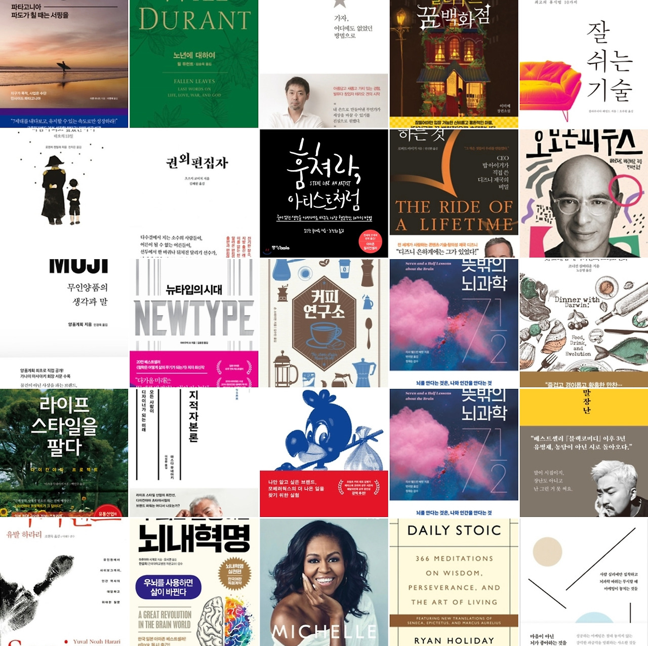 -> 최근 몇 년 관심사인 컬러와 비주얼 브랜딩, 뇌과학, 베이킹과 커피 등 음식과 관련된 책들이 많다.