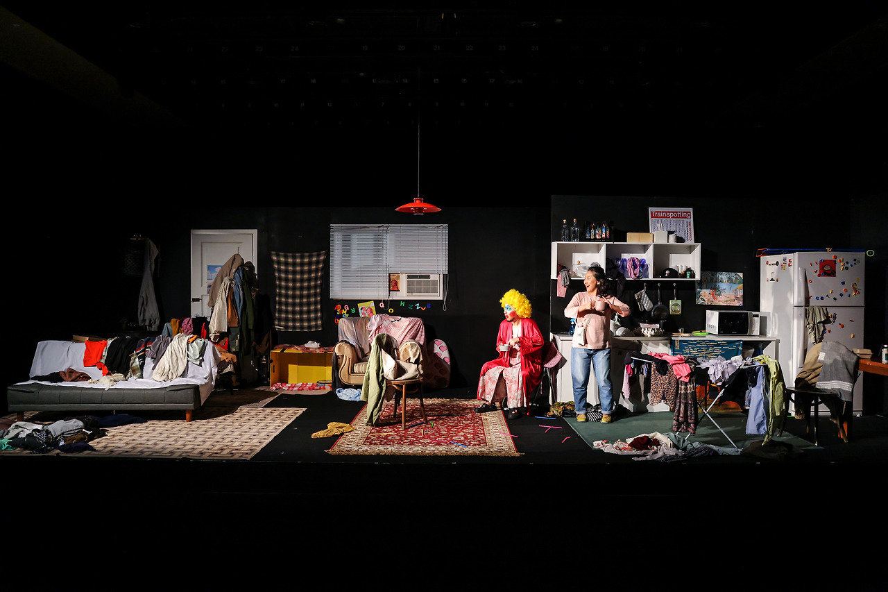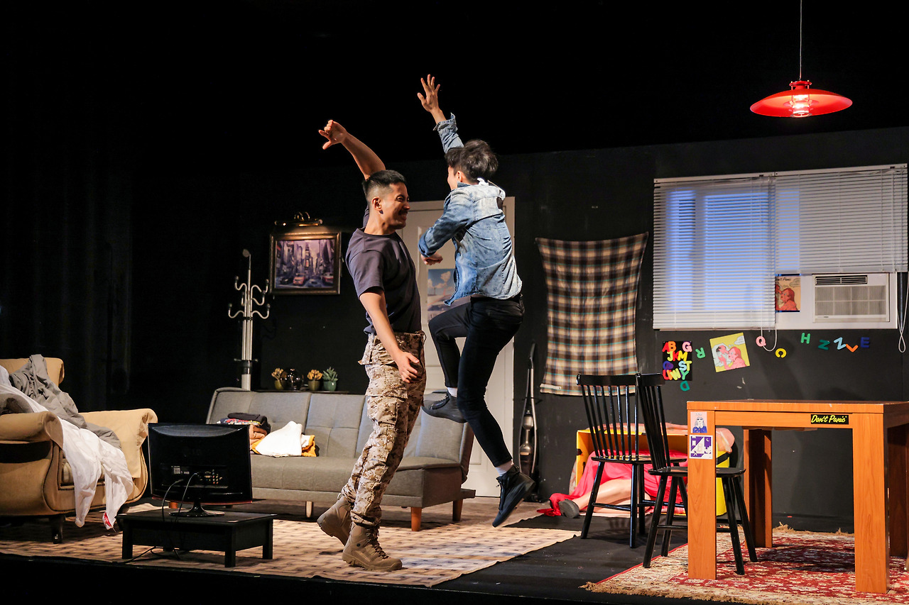 아이작이 집을 떠나는 사이 기저귀에 소변을 지리고 무너진 아빠(아놀드)를 위로하고 일으켜 세우는 것은 맥스다. 연출은 이 장면을 명확한 미장센 연출로 그려내고 있는데, 카입(이우준)음악감독이 작곡한 ‘ Hir 테마’곡이 흐르면서 장면은 절정을 향한다. 멜로디는 맥스와 아놀드의 삶이 되듯 슬프면서도 새로운 생명이 부여되는 것처럼 한 가족의 현실을 따라가며 선율의 감정은 광활하면서 두 인물의 자아를 멜로디의 선율을 그려낸다. 맥스는 아놀드의 나이트가운을 벗기고 소변을 닦아내며 옷을 갈아입히며 무너져가는 아놀드의 모습과 맥스의 장면이 교차하고 극은 맥스가 여성 옷을 개키는 것으로 끝난다. 무너져 버린 아놀드를 용서하고 삐에로 광대로 살아야 했던 뇌졸중의 아빠를 보듬는 것은 히어[HIR]로 불린 맥스다. 연극은 90년대 라이어의 원작인 한양레파토리의 <심바세매>(심야에는 바바리, 새벽에는 매리) 처럼 미국 사회의 한 가정으로 돌진하는 상황과 반전, 캐릭터들과 절묘한 대사, 행동의 타이밍으로 코미디극 같은 웃음의 산소를 공급하고 있으면서도 남편(남자)의 폭력성과 외도로 페이지 내면의 굵은 상처를 2막에서 마주할 때쯤 가족과 가정, 부계사화의 전통적인 가부장제의 모순과 폭력성은 미래 사회를 흡수할 수 없는 구조로 지어진 전복(顚覆)되고 파괴되어야 할 집이면서도 페이지가 꿈꾸는 미래의 집은 전쟁도, 남편의 폭력도, 기후변화의 위기도, 난민 문제도 사회적인 부조리와 모순으로 균열되어가는 구조의 집이(국가)가 아니라 She나 He의 경계가 없는 평등의 퀴어들이 존재하는 세상이다. 국내 초연을 한 이번 작품에서 연출의 신호를 읽을 수 있었던 것은 마지막 장면과 배우들의 절묘한 타이밍으로 앙상블을 보여준 연기였고 아쉬운 장면도 이 장면들이다.