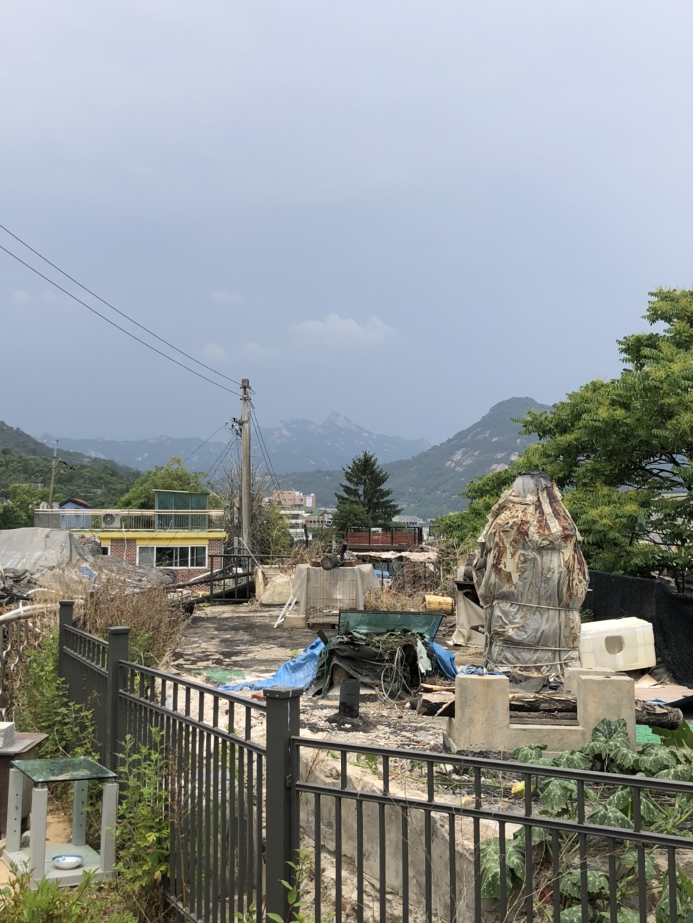 전시장에서 언덕을 조금 걷다 보면 사직터널 위를 가로지르는 작은 길에 접어든다. 산책로 양옆으로는 초록 잎이 가득해 마치 짧은 등산을 하는 기분이 든다. 터널을 지나 옆에 위치한 ‘사직 커피’에서 아메리카노를 한잔 사들고 내려가는 길에는 버려진 물건이 수북히 쌓여있는 공터가 있다. 왜인지 이미 사라지고 없는 유년 시절의 내가 코 흘리며 뛰어다녔던, 이제는 없는 골목이 떠올랐다.
